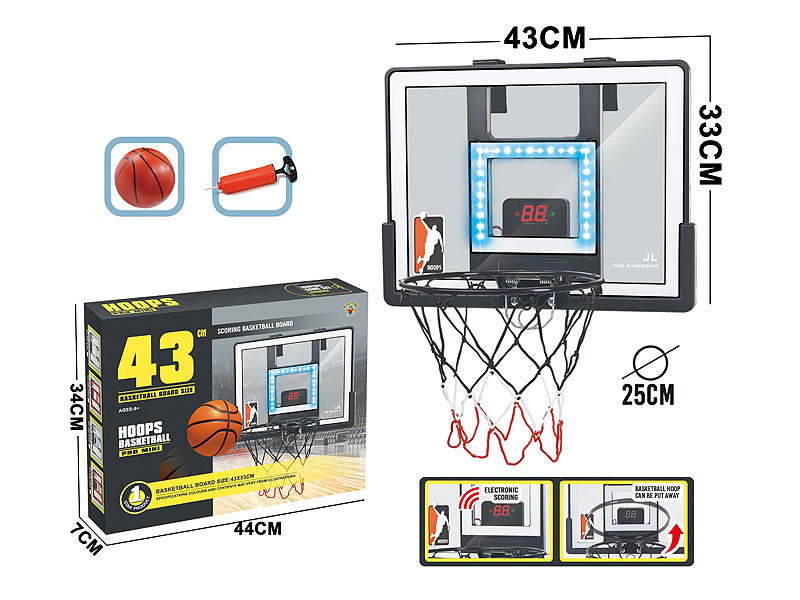 | 产品名称: | 计分带蓝灯可折可扣加强吹瓶透明挂式篮球板 |