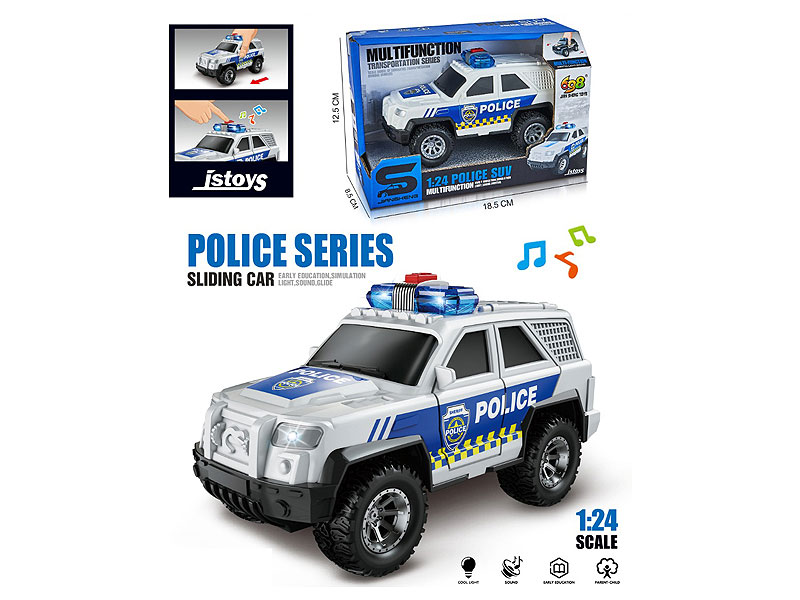 | 产品名称: | 1:24小型滑行吉普警车带灯光音乐 |